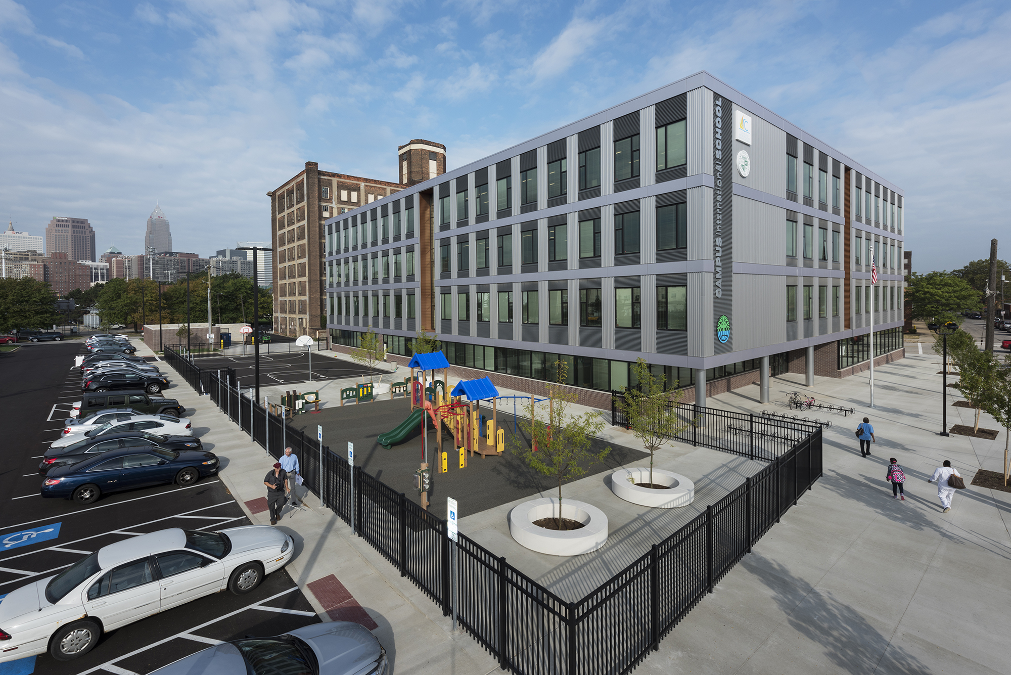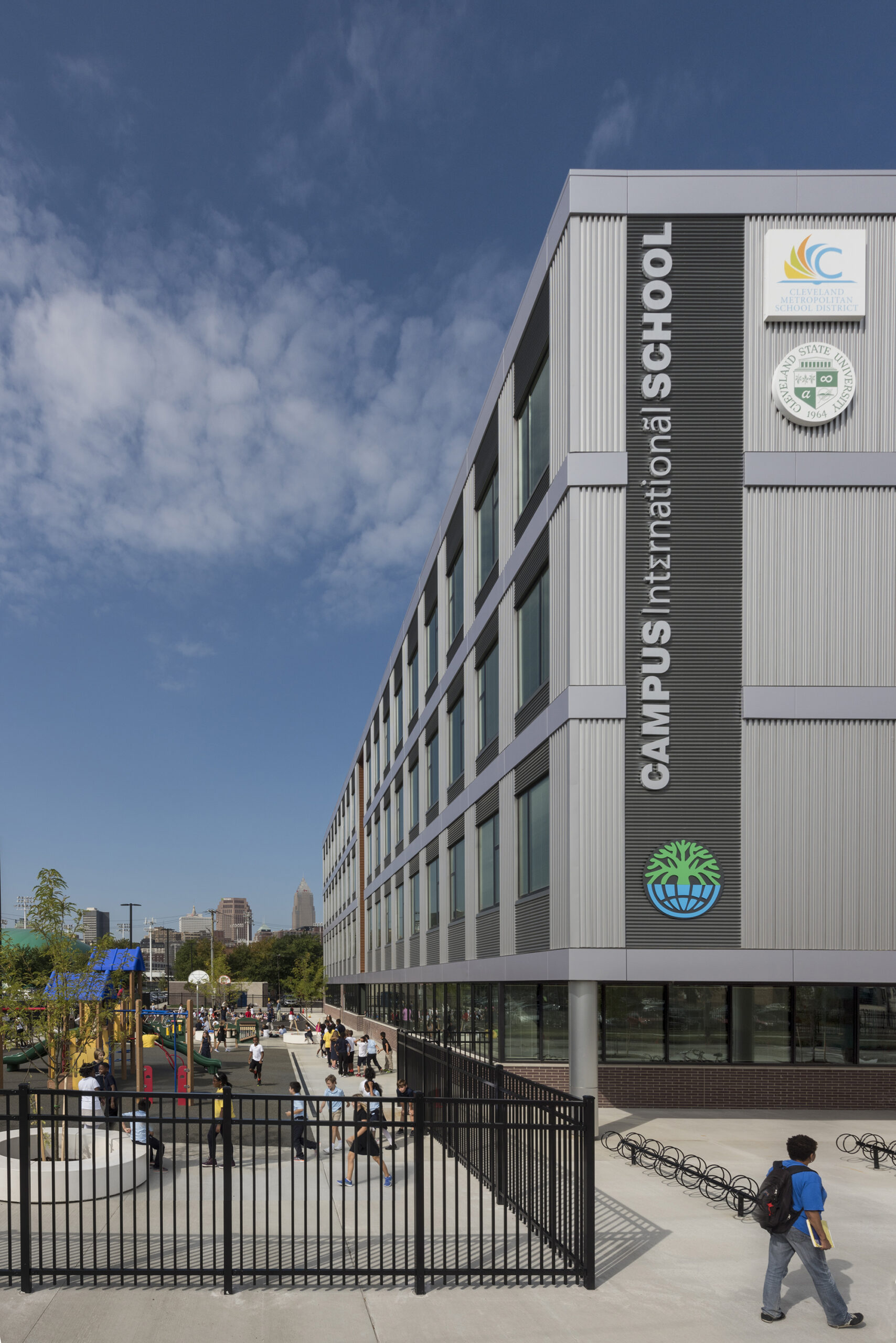 Campus International School is situated on an extremely tight, 1.75-acre urban site on the campus of Cleveland State University. The space is designed to facilitate collaboration between the two schools and to support the rigorous International Baccalaureate curriculum.