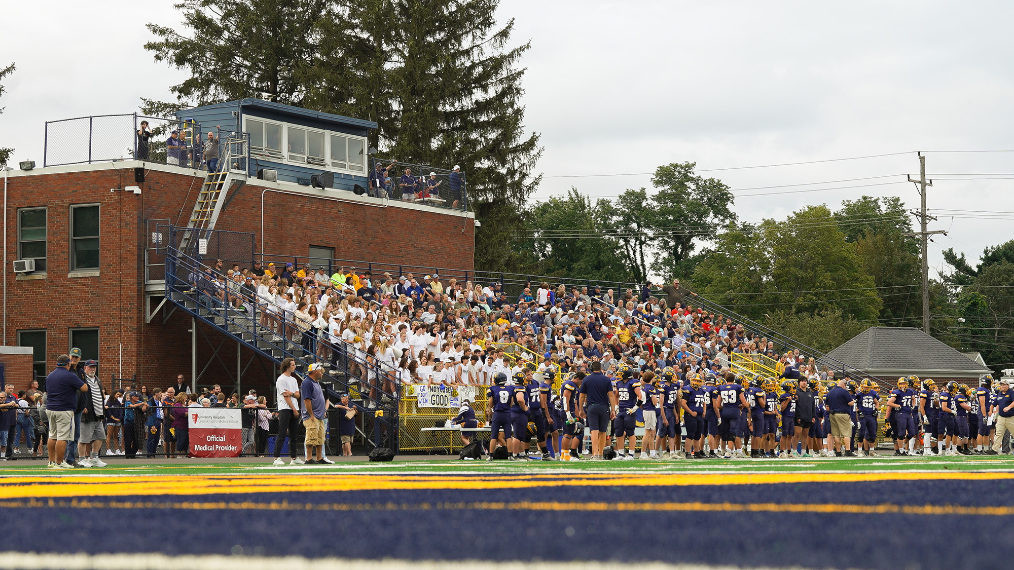 A newly remodeled press box with sleek modern amenities, overlooks the state-of-the-art field. Equipped with upgraded technology and improved acoustics, it offers a superior vantage point for observing and reporting on games.