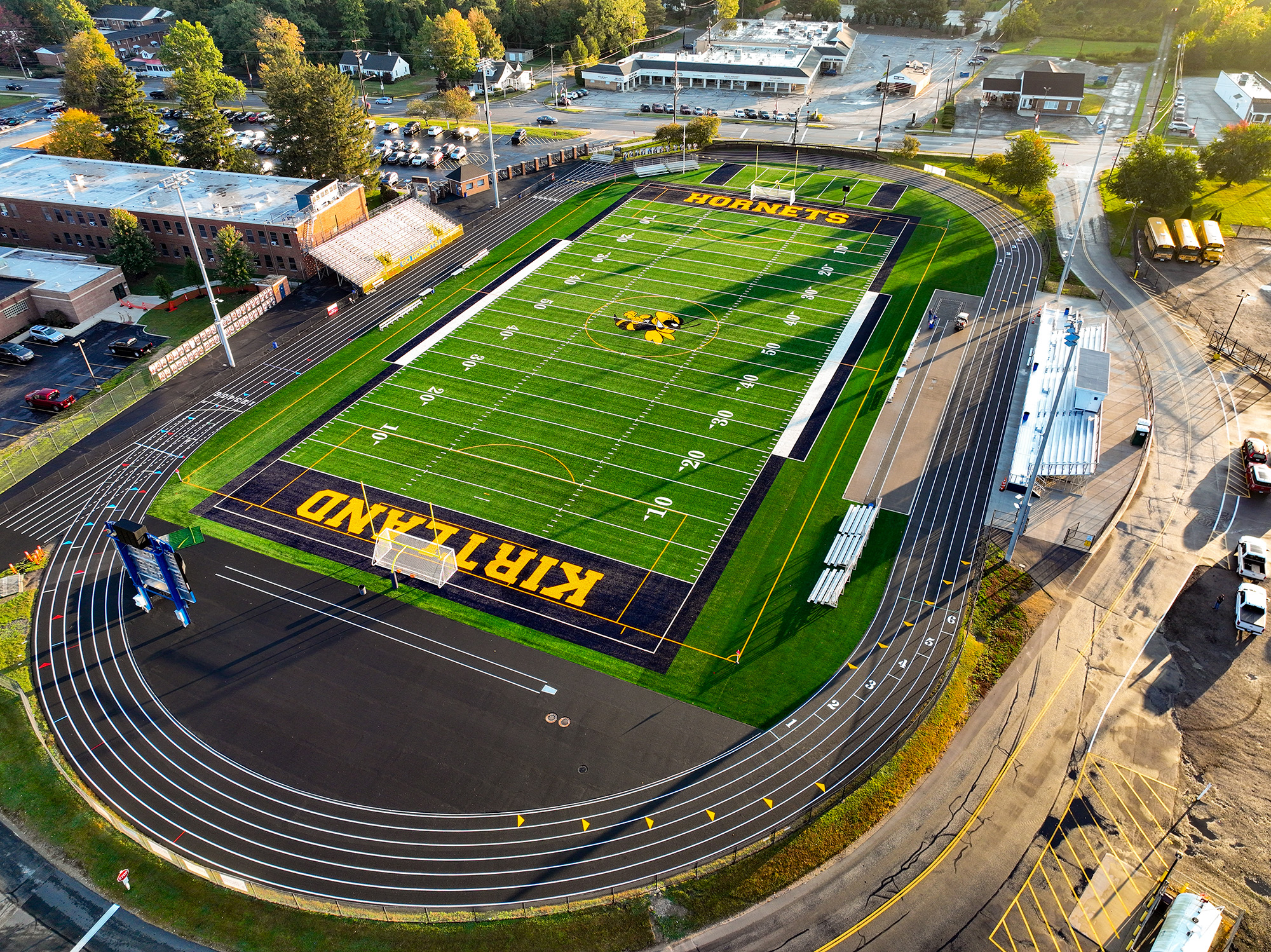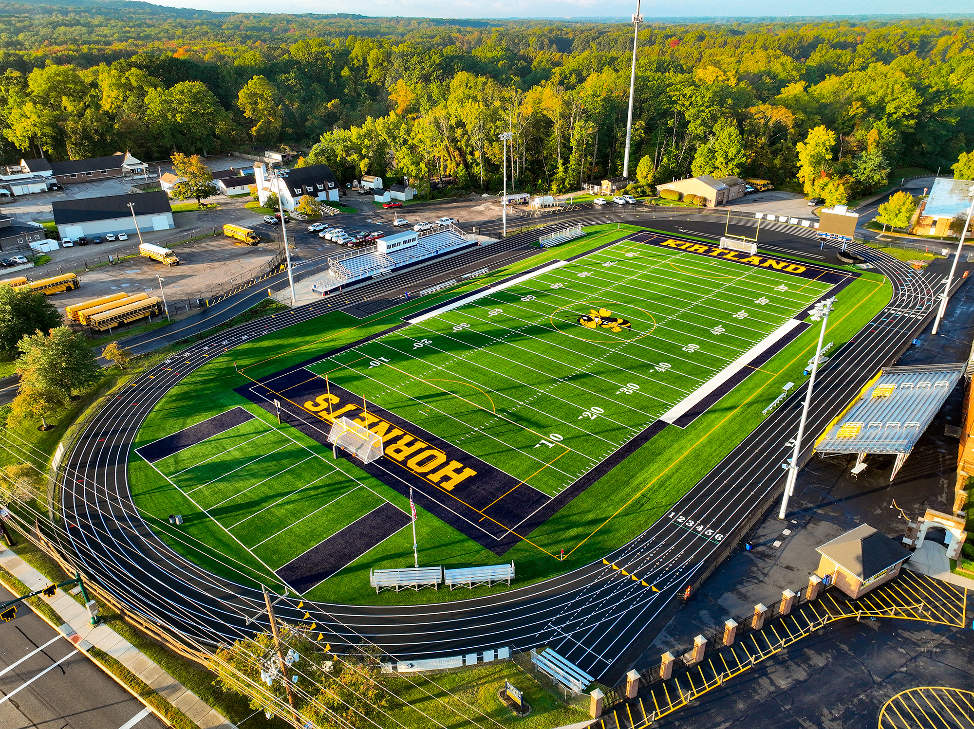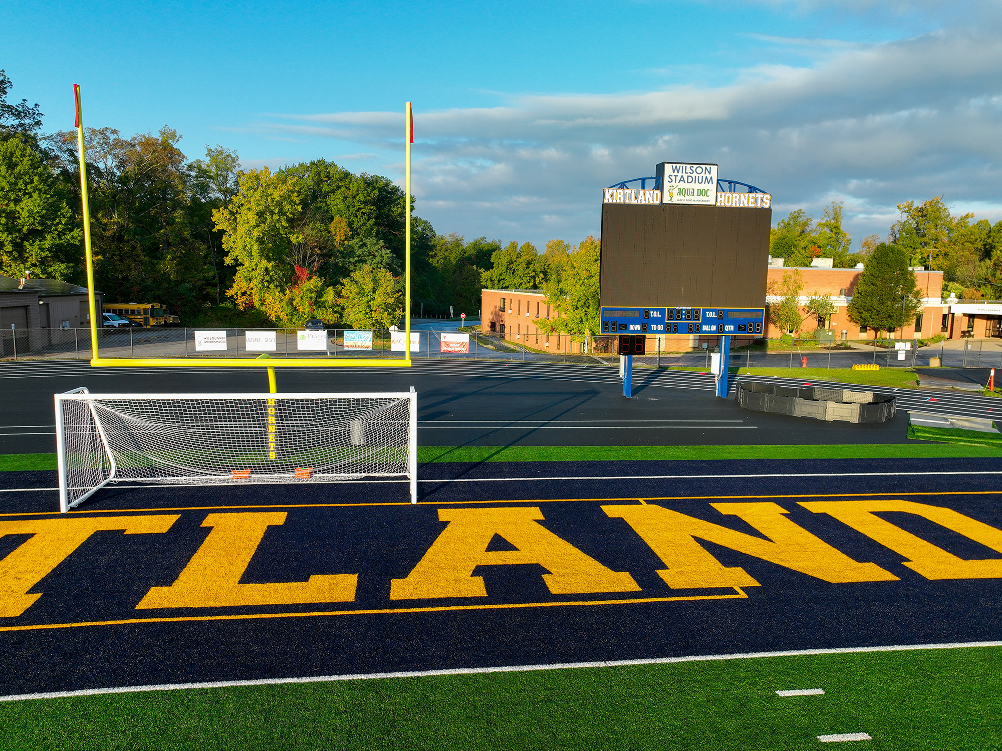 Wilson Stadium, Kirtland High School’s state-of-the-art renovated athletic facility, hosts football, soccer, and lacrosse, providing a 1000-seat home stand and an additional 600 seats for the visitor’s side.